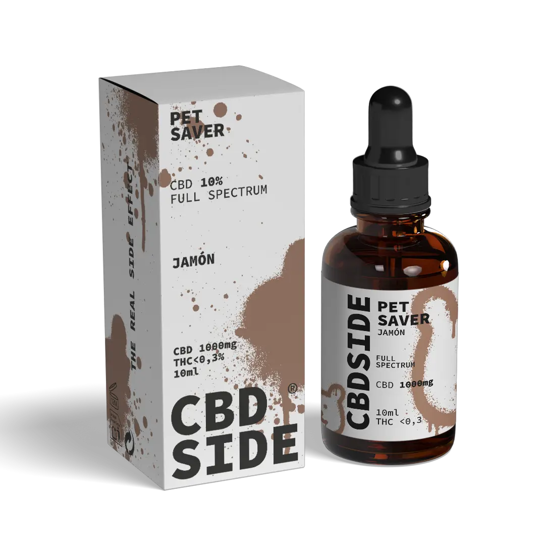 Aceite de CBD para mascotas como perros o gatos, Fullspectrum de jamón, con un porcentaje del 10% de CBD. Enfocado para el bienestar de tu mascota, proporcionando un acompañamiento nutricional con en el que notarás mejoras de forma inmediata. Nuestras aceites de CBD Fullspectrum están producidas solo con elementos extraídos de plantas cultivadas sin pesticidas ni plaguicidas.