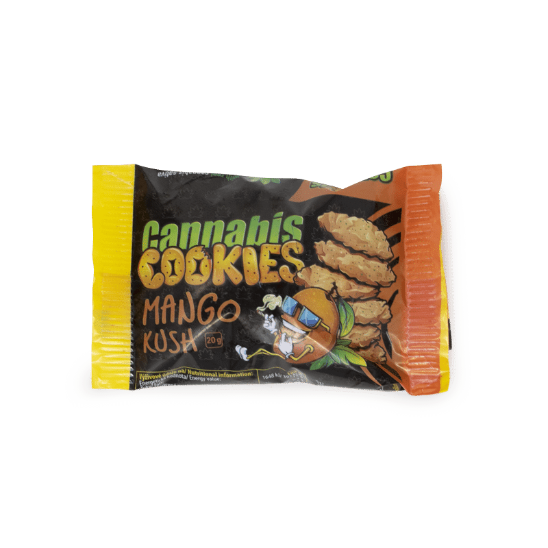 Cannabis cookies Mango Kush, estas galletas ricas en fibra, llenas de cáñamo y súper sabrosas se hornearon con amor usando solo ingredientes tradicionales de la mejor calidad, como harina integral y azúcar de caña, lo que las convierte en un refrigerio perfecto para satisfacer tus antojos.