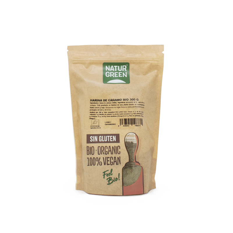 Harina de Cañamo Bio. Rica en proteinas, fibra y Omega-3.