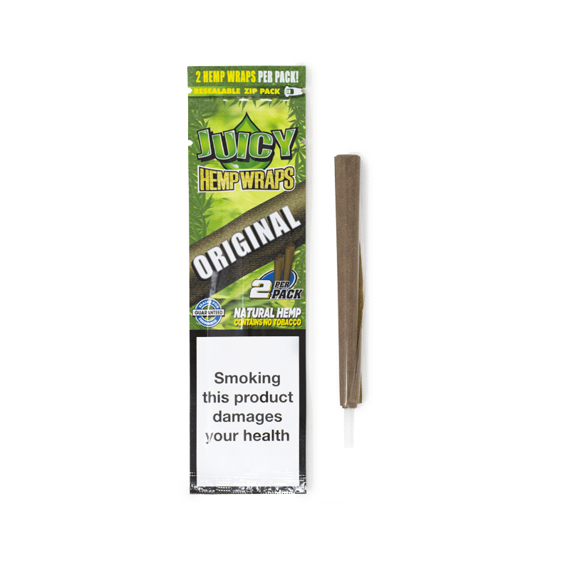 Papel fabricado 100% de cáñamo, de sabor natural o aromatizados, no contienen ni tabaco ni nicotina. Los Blunts Juicy Hemp Original Wraps miden 105mm de longitud, cada envase contiene 2 unidades con un practico cierre zip para que conserven un perfecto estado y una frescura garantizada.