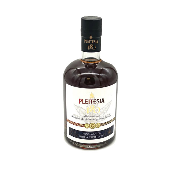 Pleitesía es una mezcla de rones de 6 a 25 años envejecidos en barricas de roble francés, que alguna vez contuvieron coñac, y macerado con semillas de cáñamo y otras hierbas.